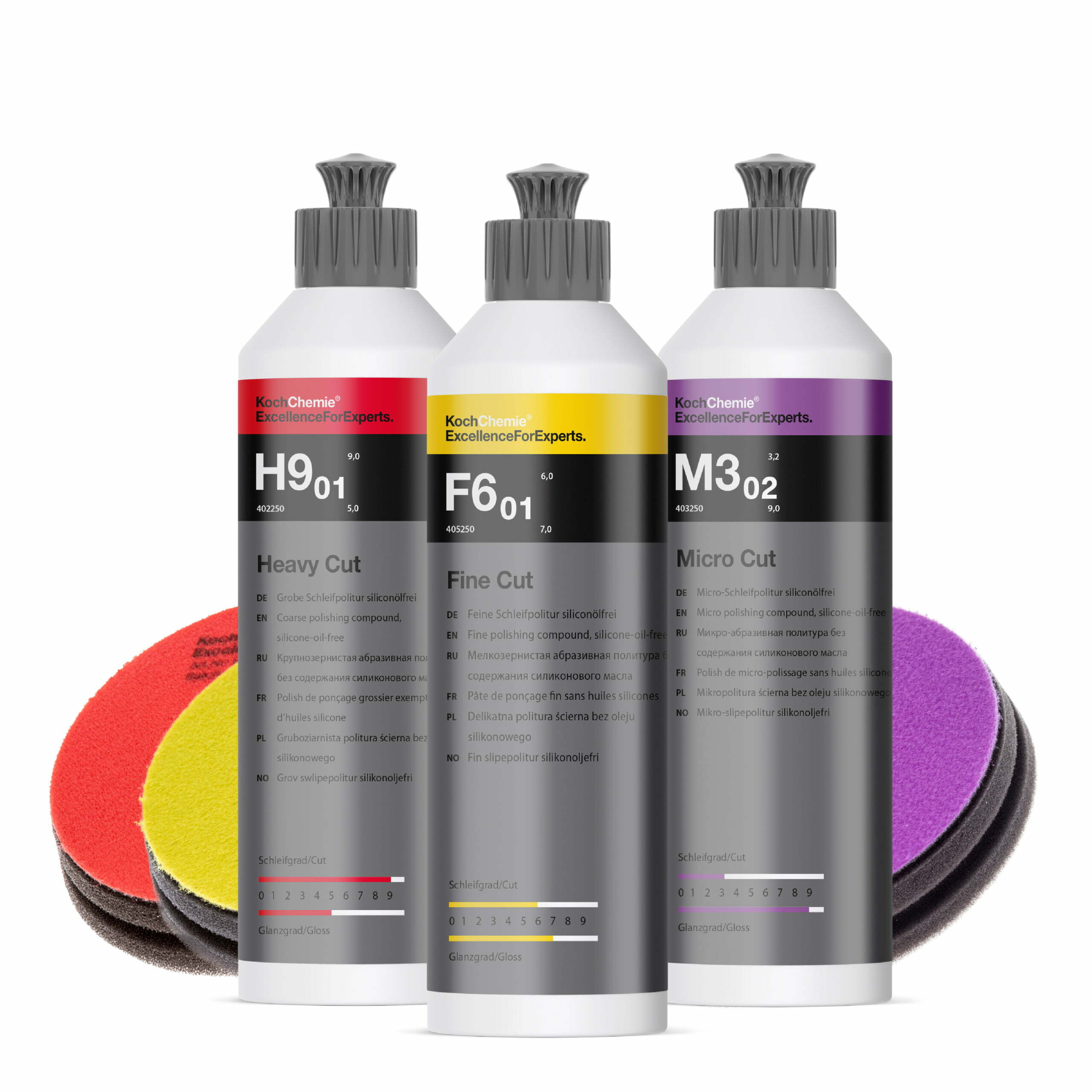 Discover the KCX polishing system by trying our ultimate polishing kit for the two-phase process. Choose Heavy Cut for deep scratch removal and Fine Cut for restoring the medium scratched surface. Finalise polishing with Micro Cut compounds. Matching pads are in the set. Get perfect results and save your time!